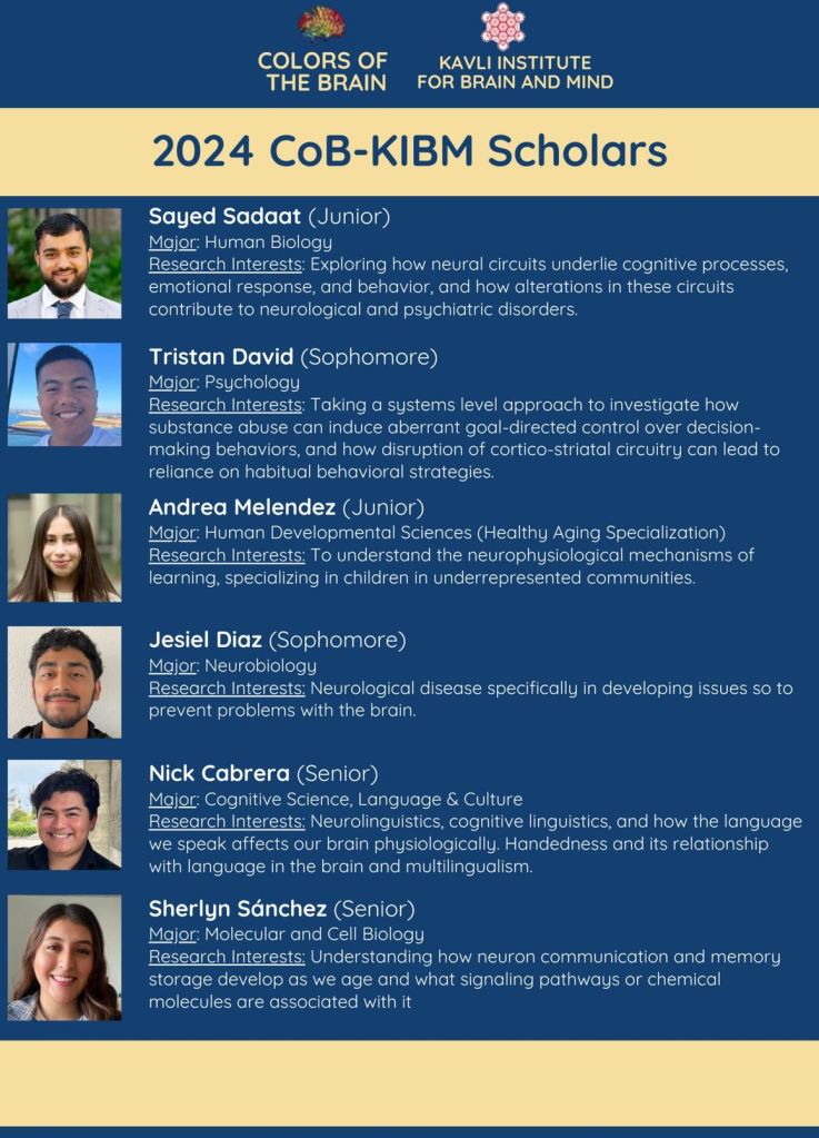 I recently decided to pursue an MD-PhD program after my undergraduate career and while trying to orient myself on this new path I came across the CoB-KIBM Scholar Program! I applied to this program because I believe they offered the best opportunities and was deeply moved by their commitment to give underrepresented students with no previous research experience a chance at neuroscience research.