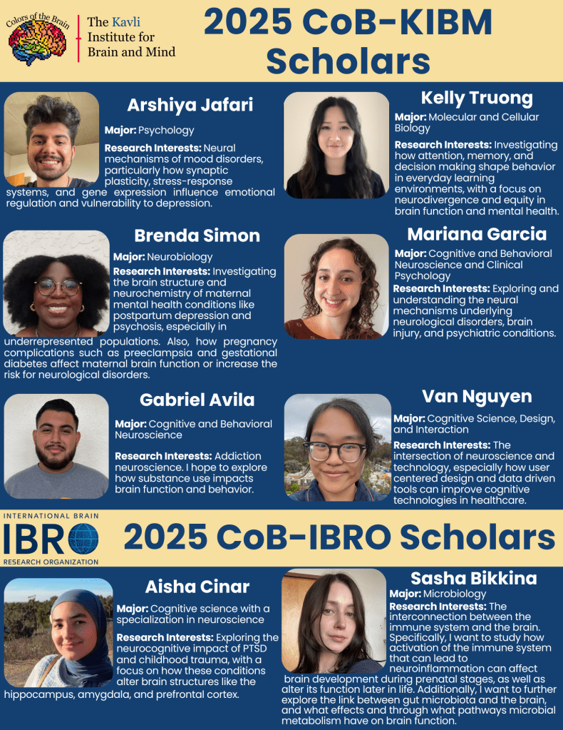 From those interviews, we selected our top 8 applicants using a ranked-choice voting system with 12 total reviewers. We chose these students due to a clearly articulated excitement for neuroscience research, in addition to a holistic evaluation of just how much they would benefit from having a competitive research position under their belt as they prepare to apply to graduate programs. This is an incredible cohort of fellows across several dimensions, from research interests to life backgrounds, and we believe that our program will be a much-needed springboard towards future research opportunities in the Fall and beyond.